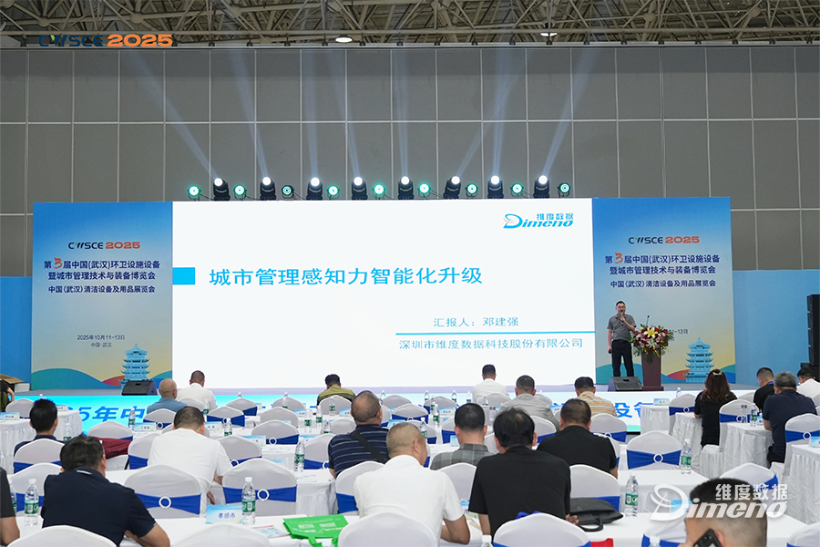 在大会论坛上,维度数据科技受邀参会并以《城市管理感知力智能化升级》为题发表演讲,系统介绍了城市管理从人工巡查向智能感知演进的发展历程,重点展示了维度数据科技通过车载巡检、无人机巡查、固定摄像头识别等方式结合AI技术在提升城市管理效能方面的创新应用,分享了公司“地空一体化”智能监管体系在实现城管问题的主动发现、精准识别与高效处置等方面的突出能力与案例成效,为中南六省(区)环卫⾏业⾼质量发展提供了“维度经验”和“维度智慧”。